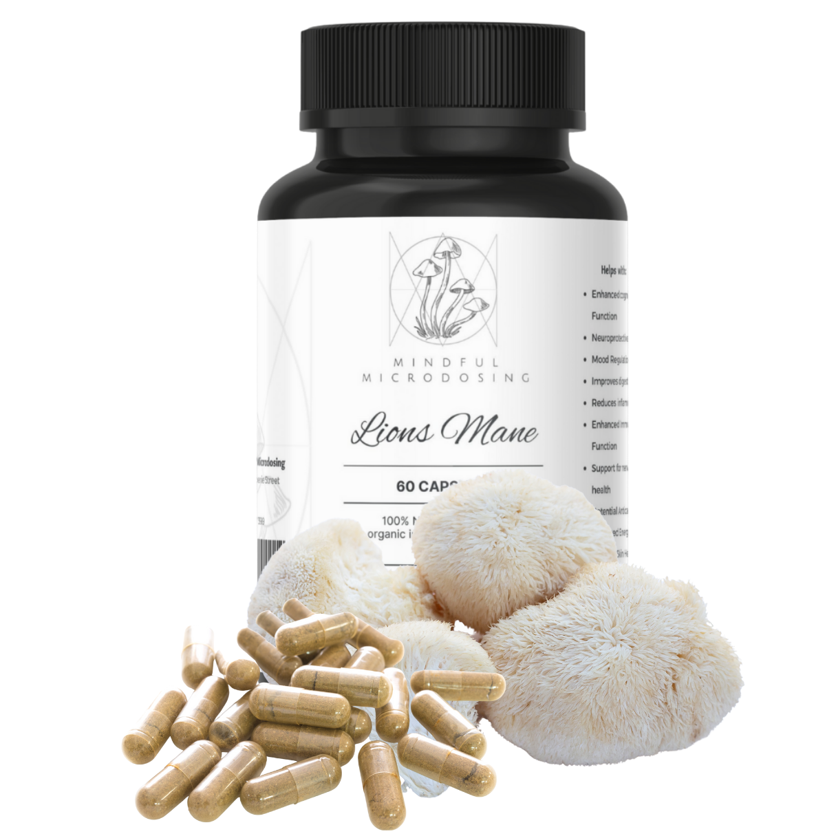 Product Description: Unlock the potential of your mind with our Lion’s Mane 60 Capsules, made exclusively from the dried fruiting body that is locally grown Lion’s Mane mushroom. This supplement is crafted to support cognitive health, enhance mental clarity, and promote overall brain function. Ideal for individuals looking for a natural way to boost focus and memory.